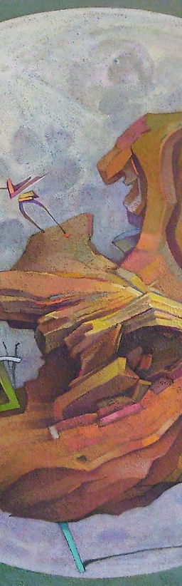 Mientras las urbanizaciones que se emplazan por tierra parecen ser resultado de la colisión de enormes semillas que al quebrarse crearon innumerables grietas y cavidades sólo para que la imaginación -o pequeñas estatuas- las ocupen, los inmuebles/máquinas que aparecen en el cielo y el mar parecen erigirse sólo para lanzarse a la deriva.